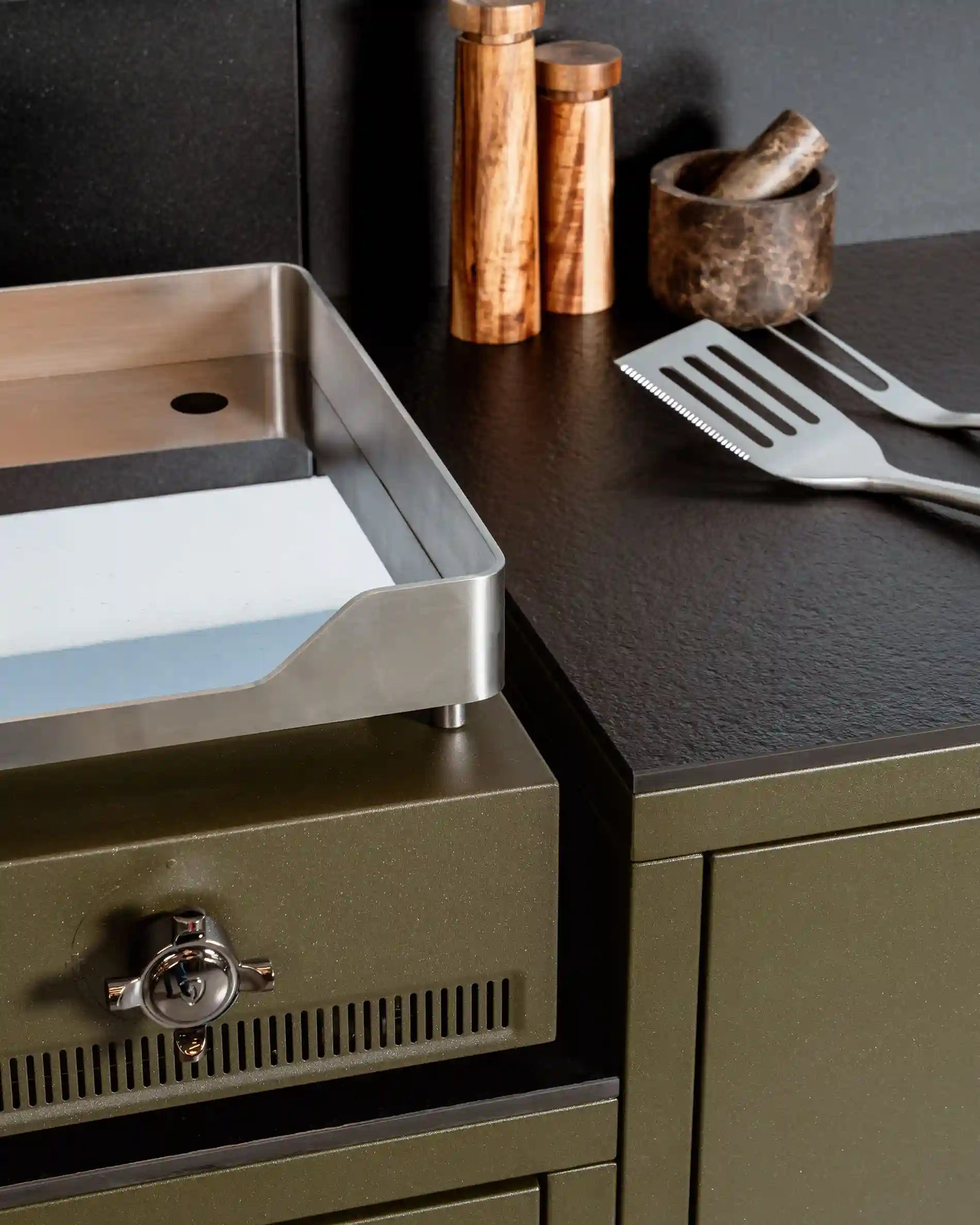De Plancha-module is ontworpen voor wie alles binnen handbereik wil hebben tijdens het koken.